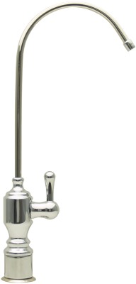 This unique, elegant, attractive, heavy-duty, long-reach Air-gap faucet enhances the décor of any kitchen. It features a 1/4 turn, ceramic disc, single lever operation which mimics and complements most kitchen faucets. The flow rate is superior to that of other conventional reverse osmosis faucets when dispensing water from the reverse osmosis storage tank. It is machined from solid lead-free brass with a more durable, longer-lasting rhodium chrome finish. It is molded, machined, and hand assembled in Los Angeles, California. The inlet water connection is 3/8″ for an enhanced water dispensing flow rate. It has a separate Air-gap module base with 1/4″ and 3/8″ brass barb connections at the base to comply with UPC plumbing code drain installation. Mounts in a standard 1 1/8″-1 1/4″ hole on the kitchen sink or countertop. USA-manufactured.